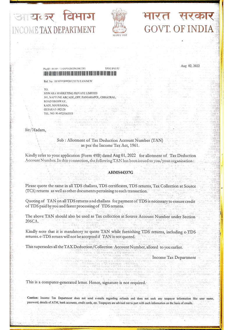 TAN Certificate